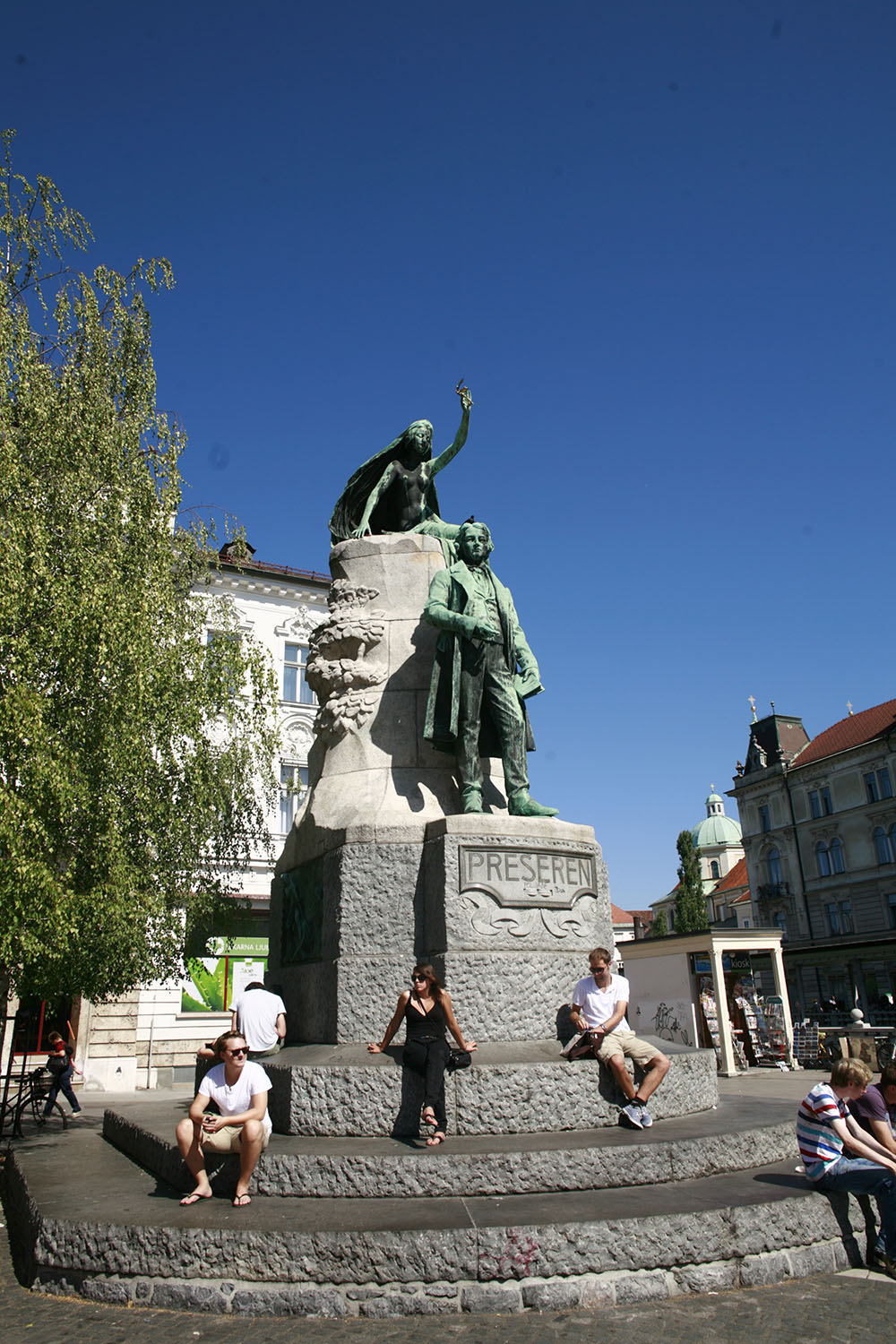 Ljubljana is filled with beautiful and interesting architecture. Lots of the buildings have bright colors and fun designs on them. Preseren Square is the main center of the city and became a place of high importance due to its having a city gate from medieval times at the site. The older buildings were damaged in an earthquake and the modern baroque structures of today are what replaced them. The square is named for the statue's namesake, France Preseren, a leading poet of Slovenia. He is depicted with his muse. Another popular building is the Urbanc House on the square.